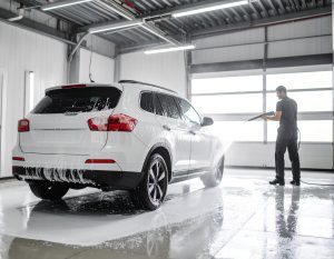 Firefly_wide-shot-of-a-SUV-in-a-garage-wash-bay-excessively-covered-in-soap-bubbles.-An-atte-801914